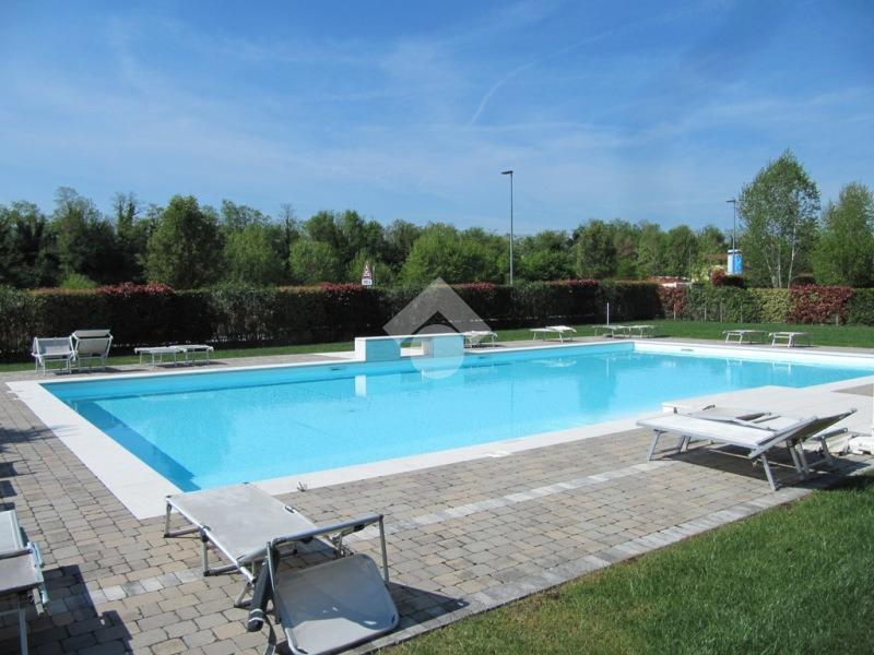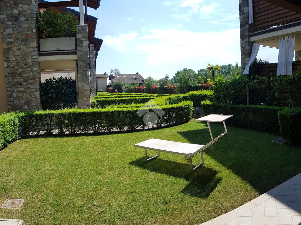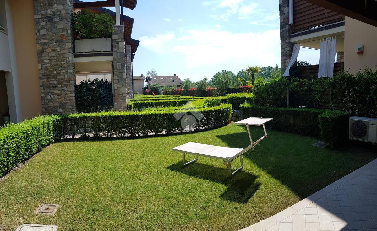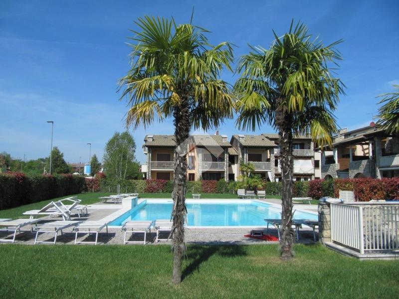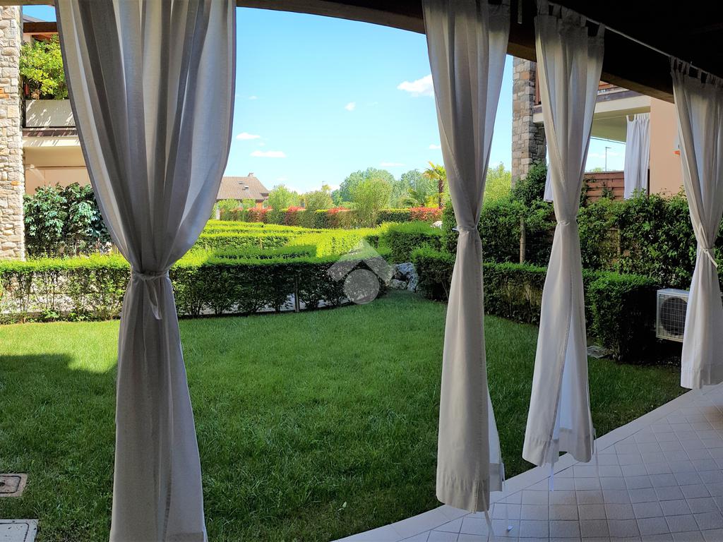 RIVOLTELLA - In signorile residence con piscina appartamento posto al piano terra composto da soggiorno, angolo cottura, camera da letto e servizio. Portico con giardino ad uso esclusivo. Box auto. Servito da ascensore. Completamente arredato e climatizzato. Animali non ammessi.