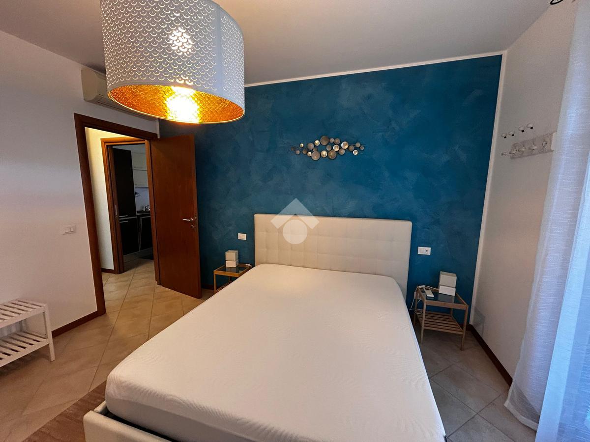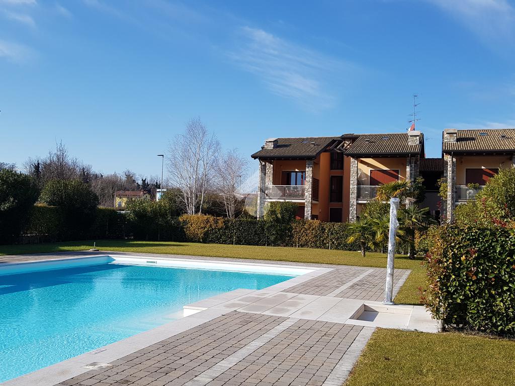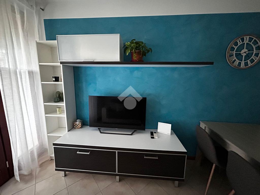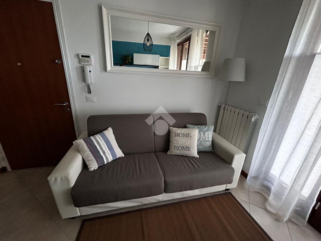 RIVOLTELLA - In signorile residence con piscina appartamento posto al piano terra composto da soggiorno, angolo cottura, camera da letto e servizio. Portico con giardino ad uso esclusivo. Box auto. Servito da ascensore. Completamente arredato e climatizzato. Animali non ammessi.