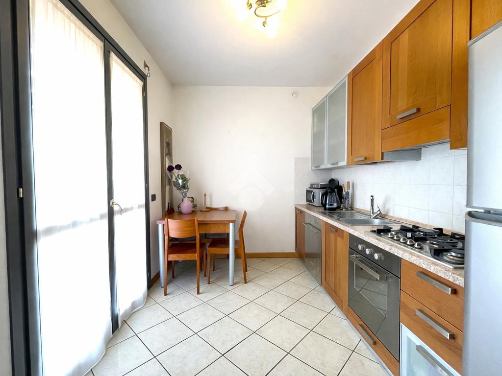 L'appartamento, servito da ascensore, si trova al secondo e ultimo piano ed è così composto: l'ingresso apre direttamente sulla zona giorno dove si ha accesso al terrazzo dal quale è possibile godere di splendida vista lago a 180 gradi, la cucina è abitabile e anch'essa ha accesso alla terrazza.