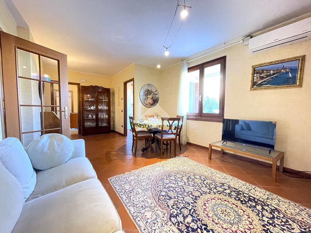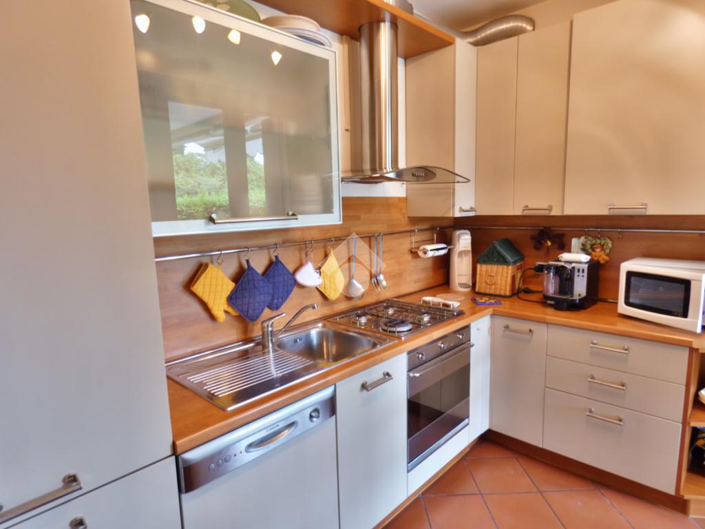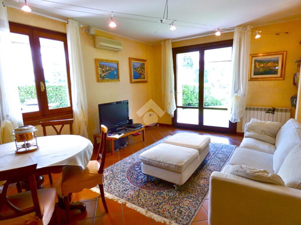 L'appartamento si compone di soggiorno con cucina separata, entrambi dotati di porte finestre che conducono al giardino di proprietà. La zona notte si compone di camera da letto matrimoniale, seconda camera dotata di bagno privato con doccia e secondo servizio con vasca.