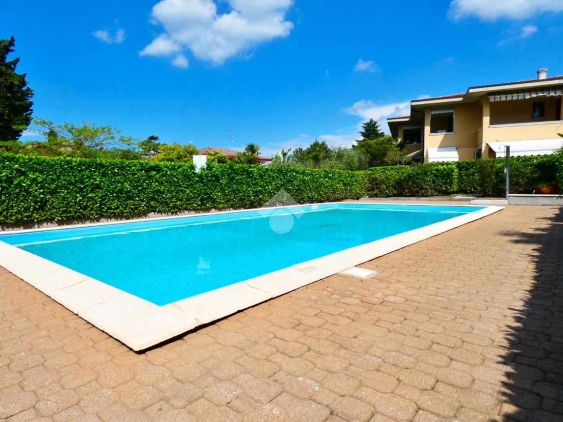 In piccolo contesto con piscina, situato in pregiata zona residenziale comoda al centro di Desenzano e al lago, appartamento trilocale al piano terra con GIARDINO PRIVATO e TAVERNA.