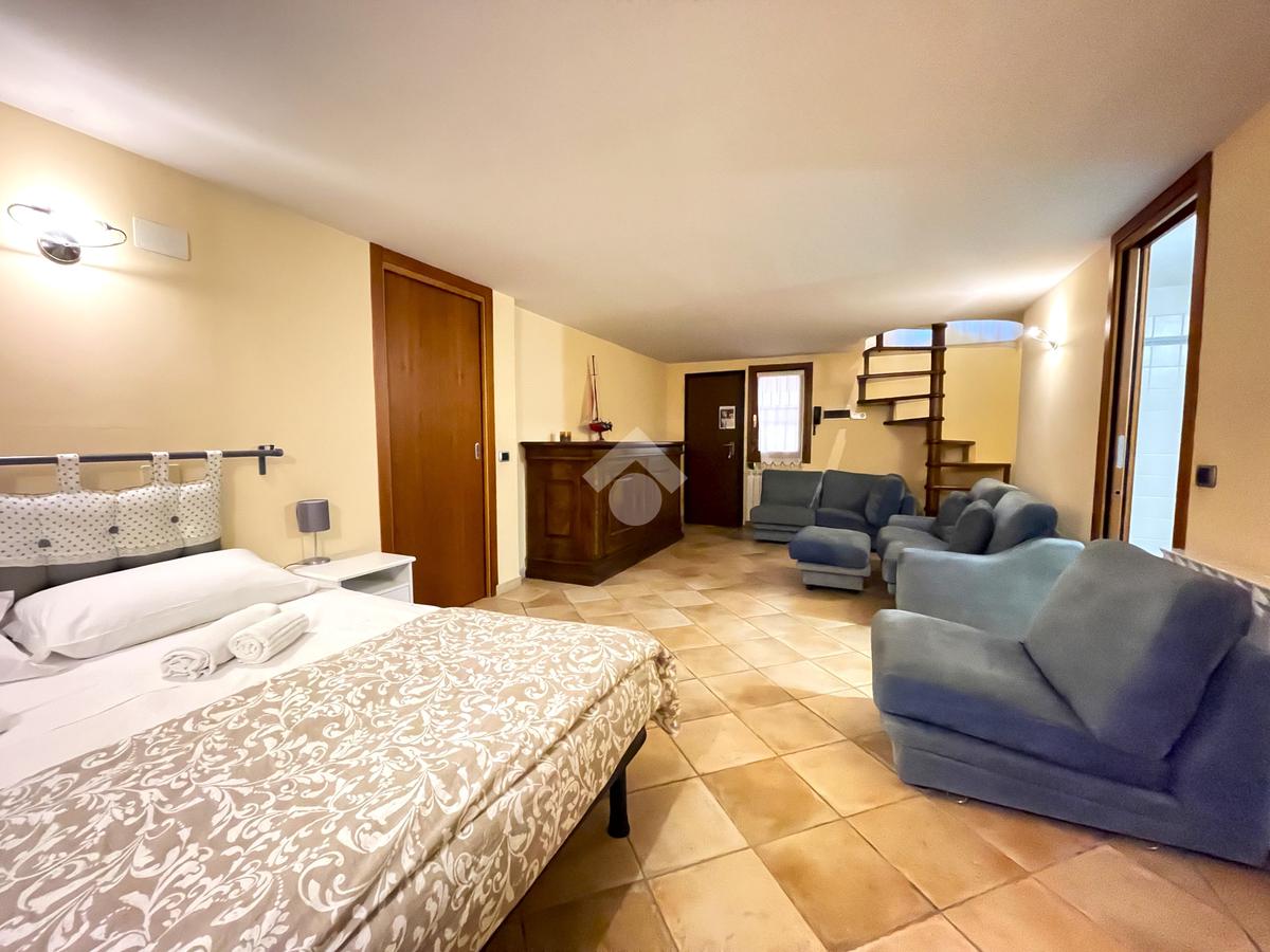 Tramite una scala in legno si accede al piano inferiore dove è presente una comoda taverna provvista di camino e un terzo servizio.