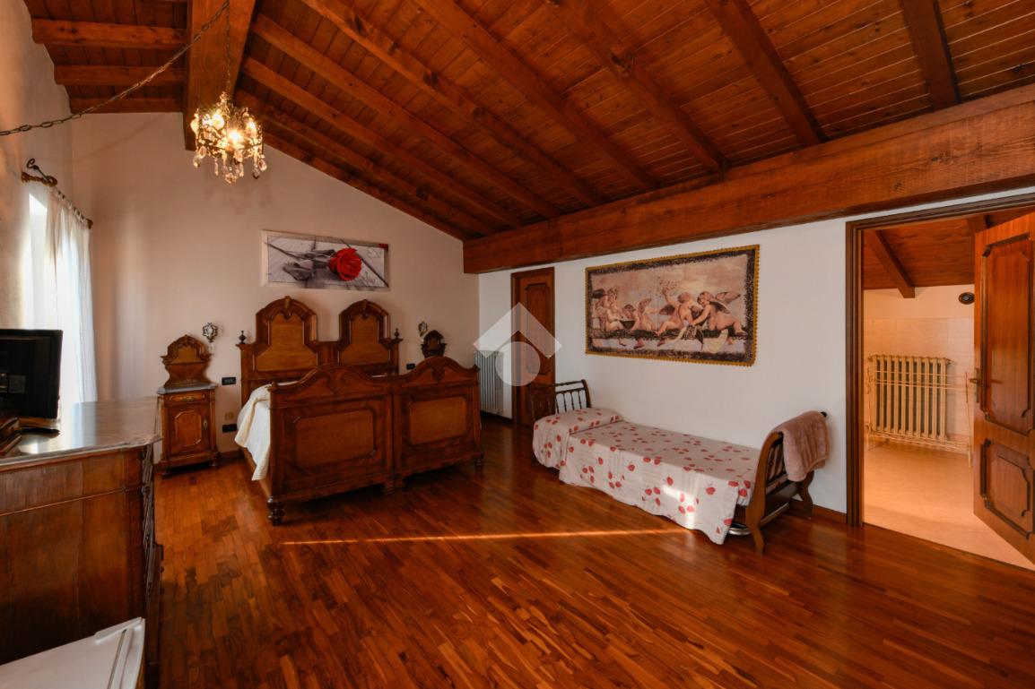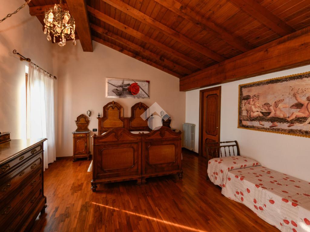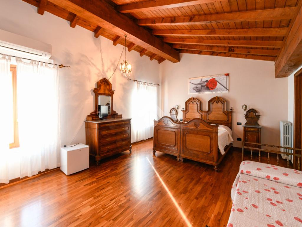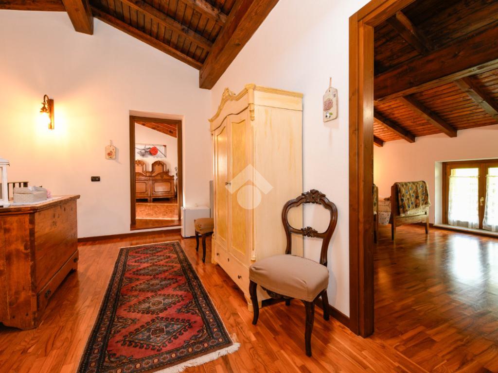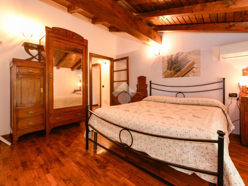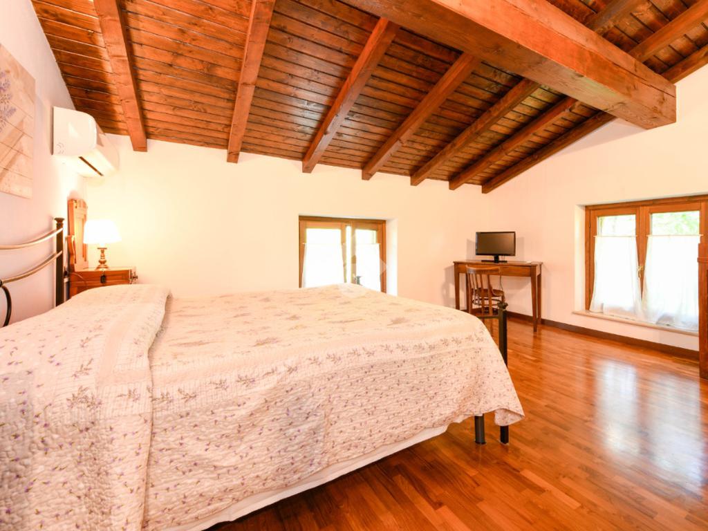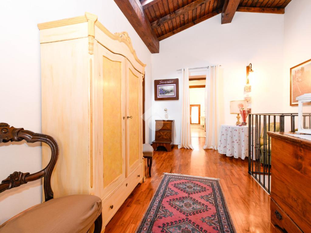 Al piano superiore tutta la zona notte si caratterizza con travi a vista in legno ed è disposta con camera matrimoniale padronale con bagno privato e cabina armadio, 2 ampie camere da letto matrimoniali, bagno.