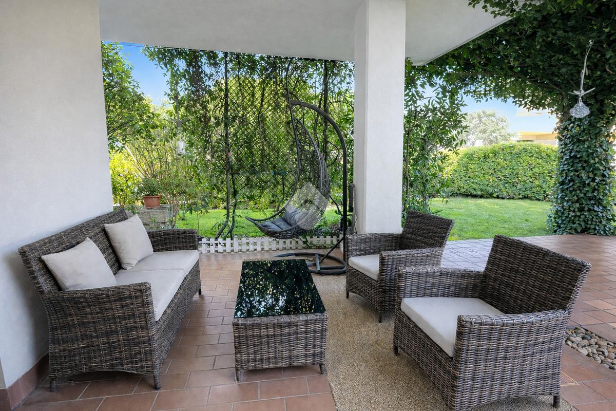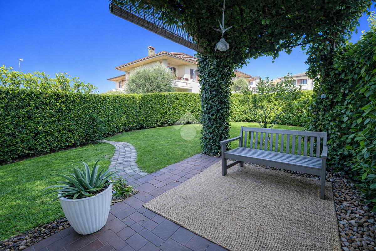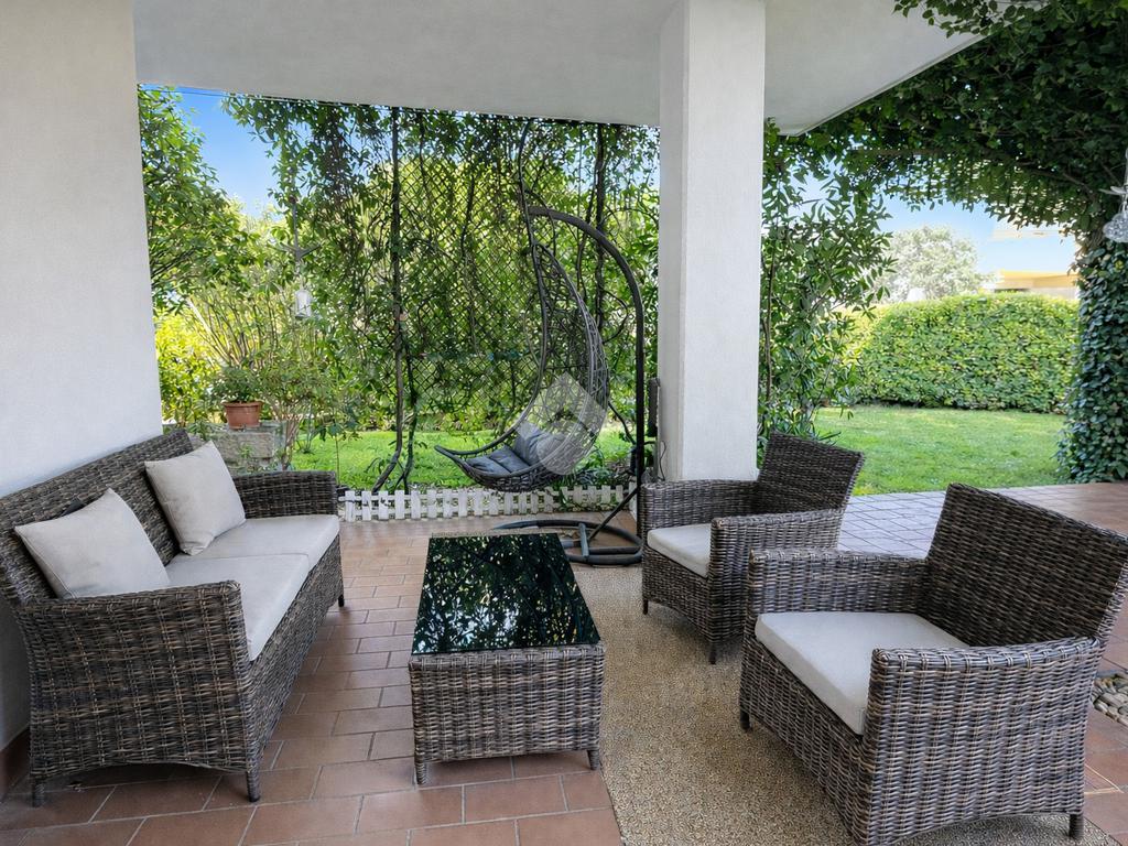 La villa è inserita in un piccolo contesto residenziale ed è così composta: il vialetto pedonale conduce al porticato dove si ha accesso all'abitazione. Al piano terra è presente l'ingresso, il soggiorno dotato di porta finestra che conduce direttamente al giardino esterno, la cucina abitabile e un servizio finestrato con doccia.