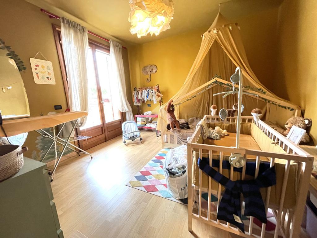 Al piano superiore troviamo una camera da letto matrimoniale con accesso ad un balcone angolare, seconda camera da letto matrimoniale,il secondo bagno finestrato con doccia e una terza camera da letto ,attualmente adibita a grande cabina armadio ,dalla quale si accede ad un'ampia zona sottotetto attraverso una scala in legno.